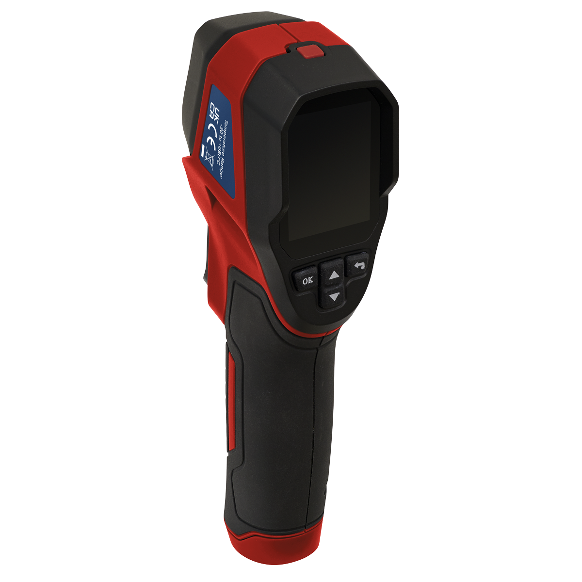 Thermal imaging camera for the detection of high and low temperature. Heat-mapped colour palettes and temperature reading. Includes on-screen cursor to accurately locate minimum/maximum temperature variation. Suitable for many industries including automotive, building and electrical.