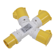 110V 2P+E 3-Way Splitter, 16A. IP44 Rated.