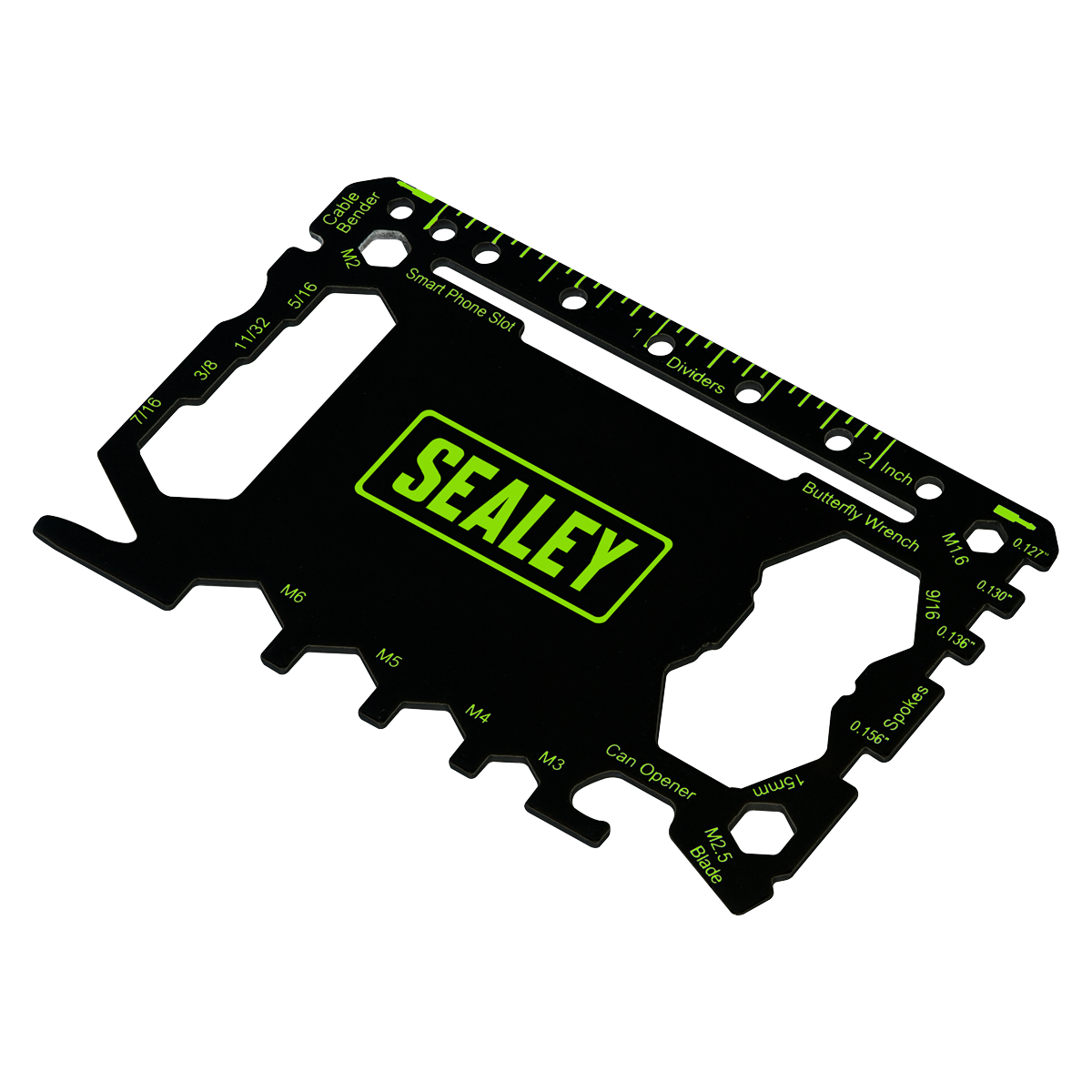 This highly versatile 50-in-1 multi-tool is the size of a credit card and will easily store in your pocket, wallet or purse. Functions include a screwdriver, ruler, wire cutter, protractor, bottle opener and many more. Made from steel for extra durability.