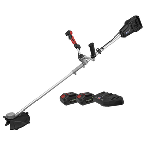 Designed for the professional, offering heavy-duty, high performance, durable tools with lightweight composite designs for superior control and comfort. Supplied with 2 x 20V 4Ah batteries from the Sealey SV20 Series. Wide cutting width of 35cm (brush cutter) and 25cm (trimmer). 2-in-1 Function, supplied with line cord for cutting and trimming grass, and a metal blade for cutting heavy growth and weeds. Body strap and dual handles for comfort during prolonged use.