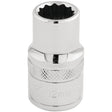 Expert Quality, 12 point socket manufactured from chrome vanadium steel that's hardened and tempered with a polished finish. Each socket has a knurled ring for extra grip.