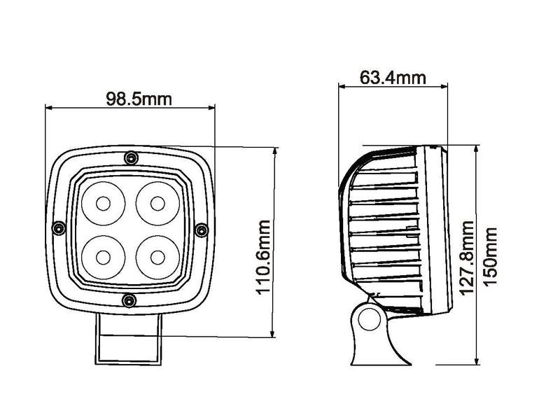 Powered by 4 high-efficiency LEDs, this 10–30V work light produces 2500 effective lumens with minimal power consumption—just 2.25 amps at 12V. Its IP69K-rated aluminium housing and safety glass lens provide full protection against water, dust, and pressure washing, guaranteeing durability in demanding environments.
