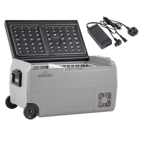 36L Portable compressor fridge freezer cool box. Lightweight and compact design with handles allowing you the flexibility to take with you anywhere you go. Ideal for long road trips, camping or fishing trips, caravan holidays and general travel use. Supplied with an AC to DC adaptor, giving you the option to use at home as well in your vehicle with a 12V socket. Featuring Dual Zone design, so you can control the temperature of each zone individually, with both compartments ranging from -20°C to 20°C. Power Consumption: 0.27kWh / 24hr. An electronic thermostat with LED digital temperature display makes it easy to adjust and monitor the temperature. Control panel features useful USB output port for your on-the-go charging needs (power supply to the unit required). Dimensions (W x D x H): External - 723 x 360 x 368mm. Internal - (W x D x H): 550 x 270 x 285mm.