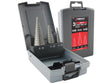 Abracs Step Drills are designed to streamline the workload and maximise performance. With a three edged shank to eliminate slipping and a dual cutting edge for super-fast and effective drilling. Supplied in a handy and durable plastic case.