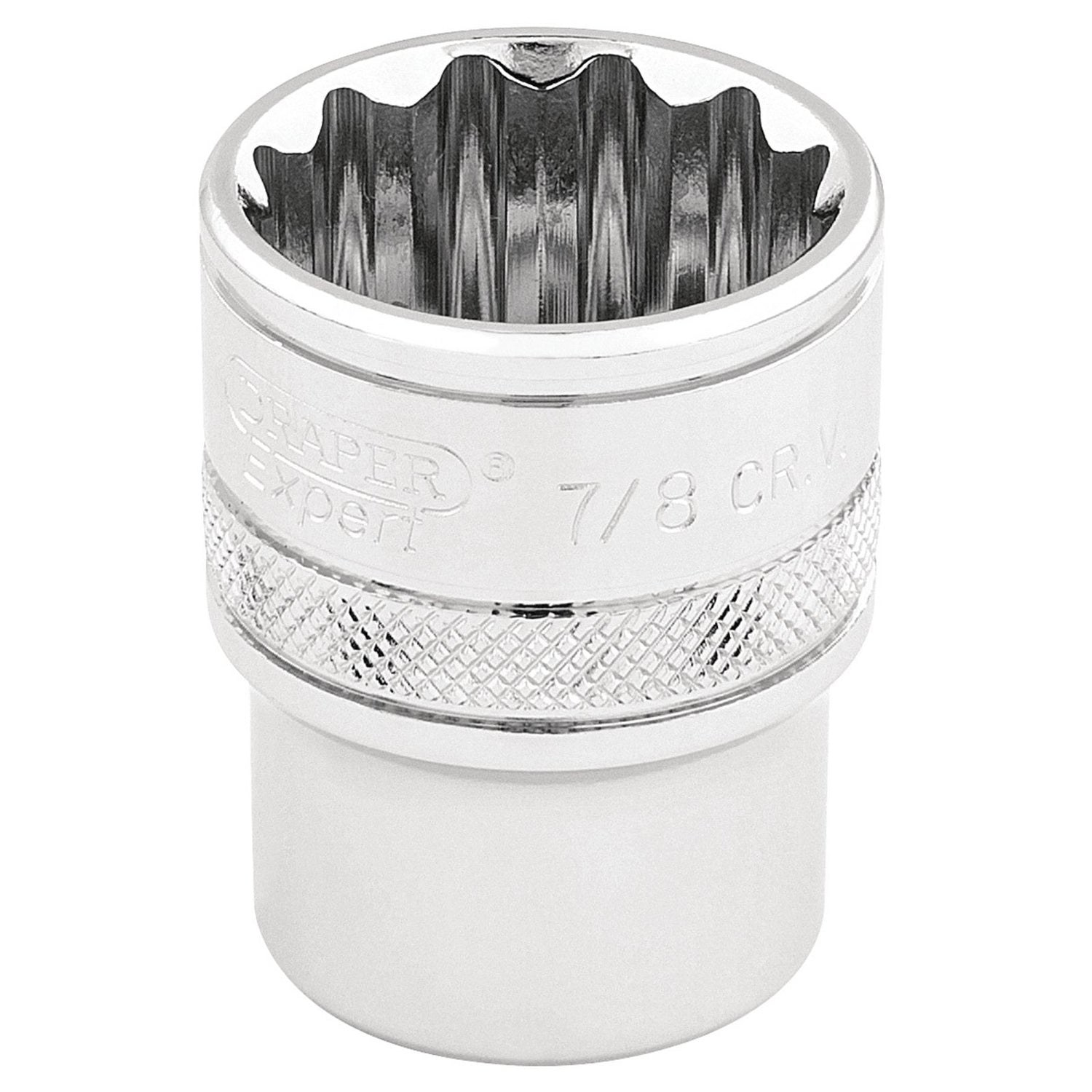 Expert Quality, 12 point socket manufactured from chrome vanadium steel that's hardened and tempered with a polished finish. Each socket has a knurled ring for extra grip.