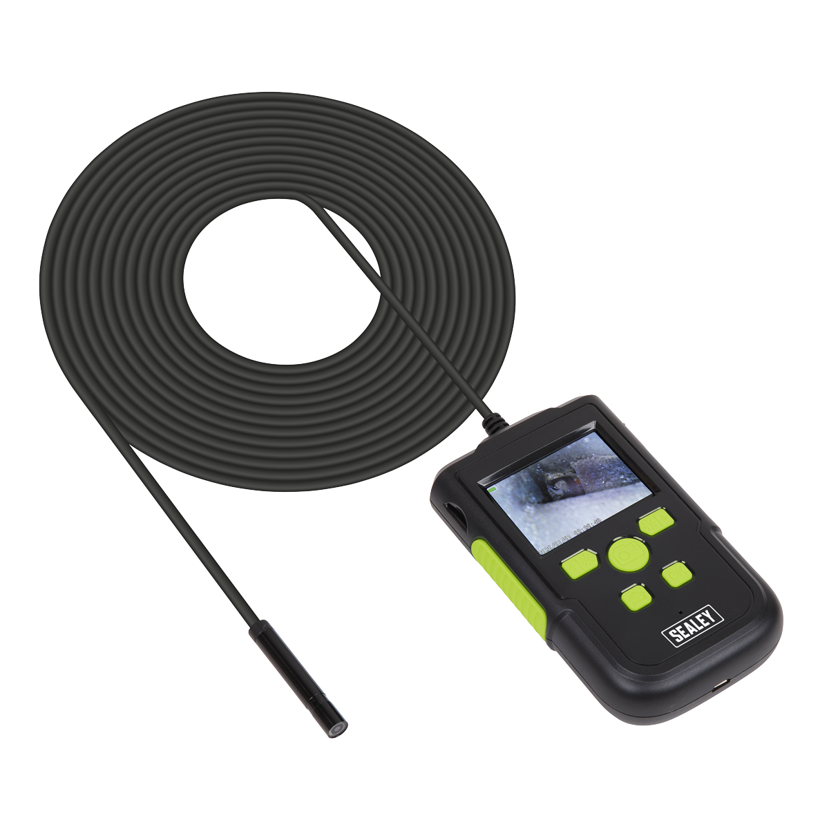 High performance handheld borescope with 60mm colour LCD screen and waterproof probe pod with IP67 rating. Features video record/playback and still images. Videos and images are stored on a micro SD card (not included). 2.5Ah Lithium battery capacity allowing up to 10 hours working time. Kit includes 45° mirror, hook and magnetic pick-up. USB Charging cable supplied.