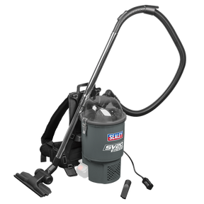 Designed for the professional, offering heavy-duty, high performance, durable tools with lightweight composite designs for superior control and comfort. Operates using 2 x 20V batteries from the Sealey SV20 Series (batteries must be of the same Ah rating). Wearable backpack vacuum for easy cleaning. Lightweight 4L tank features quick release clasps for ease of emptying. Supplied with Crevice Nozzle, Brush Head, Hose Extension Tube, 1m Flexible Hose, HEPA Filter (x2), Dust Bag (x2). Sold as a bare unit. Requires 2 x CP20V Series 20V batteries of same Ah rating for operation (sold separately).