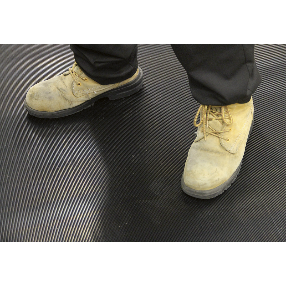 Hard-wearing natural rubber with a slip resistant fluted surface. Provides insulation from cold concrete floors. Can be used on workbenches to help prevent damage to fragile parts and worktop.