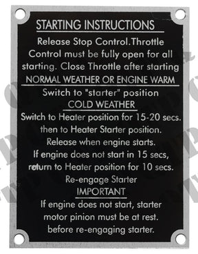 *SPECIAL PRICE* - Tractor Badge MS-62458 Starting Instructions Plate 100's
