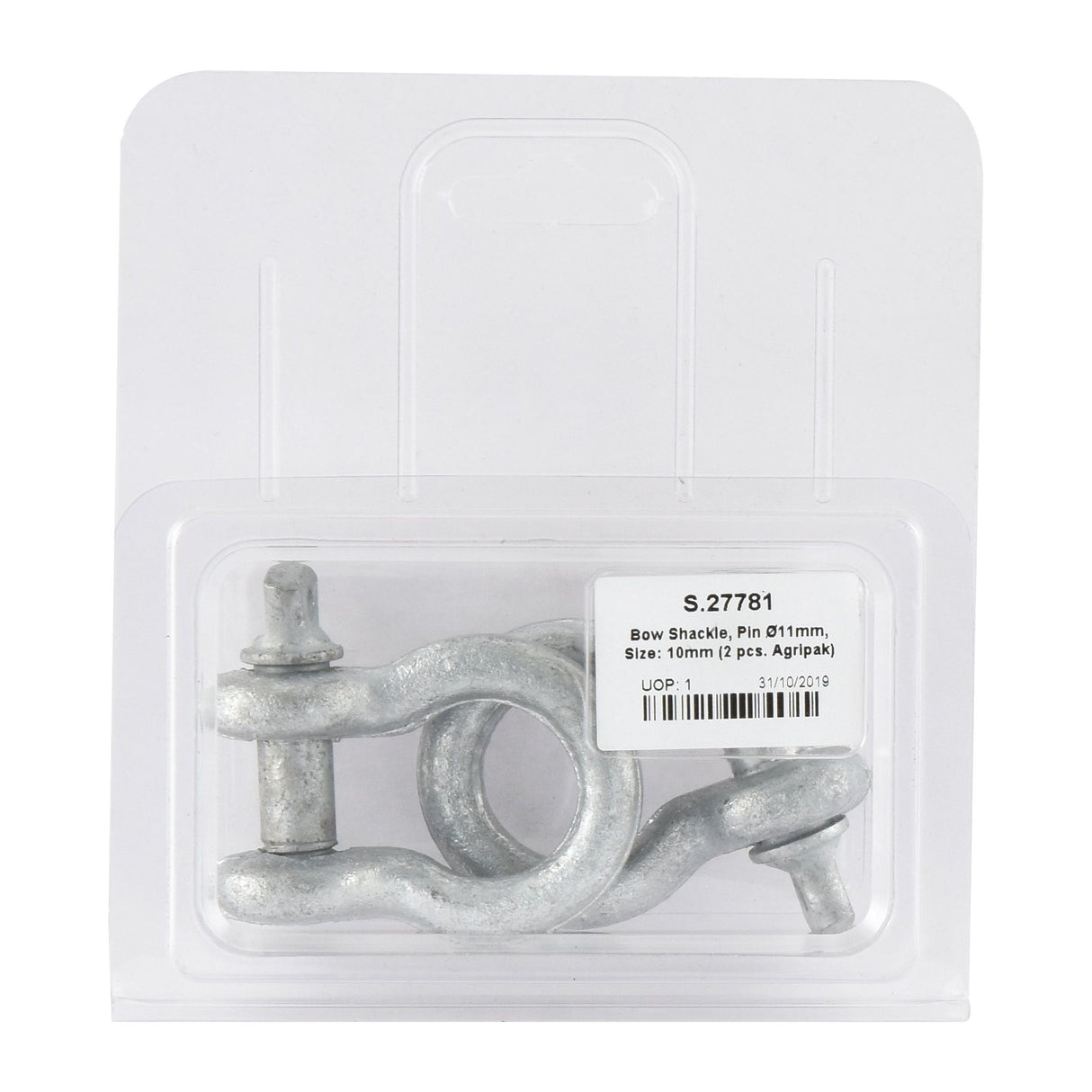 Bow Shackle - Pin Ø11mm, Size: 10mm (2 pcs. Agripak) | Sparex Part No. S.27781