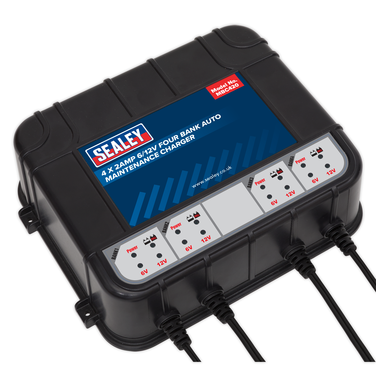Four Bank 6/12V 8A (4 x 2A) Auto Maintenance Charger - MBC420 2.254 kg