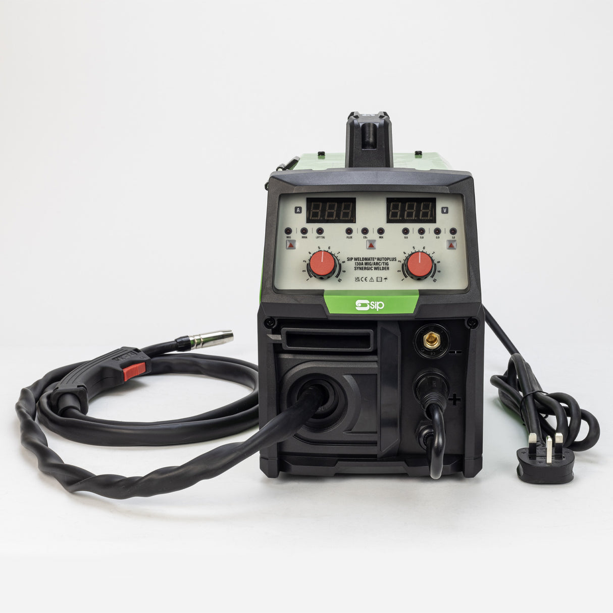 The SIP WELDMATE® AUTOPLUS 130A MIG/ARC/TIG Synergic Welder is a multi-process inverter welder specificially designed for use in automotive and garage environments, and is powered from a 13A supply.