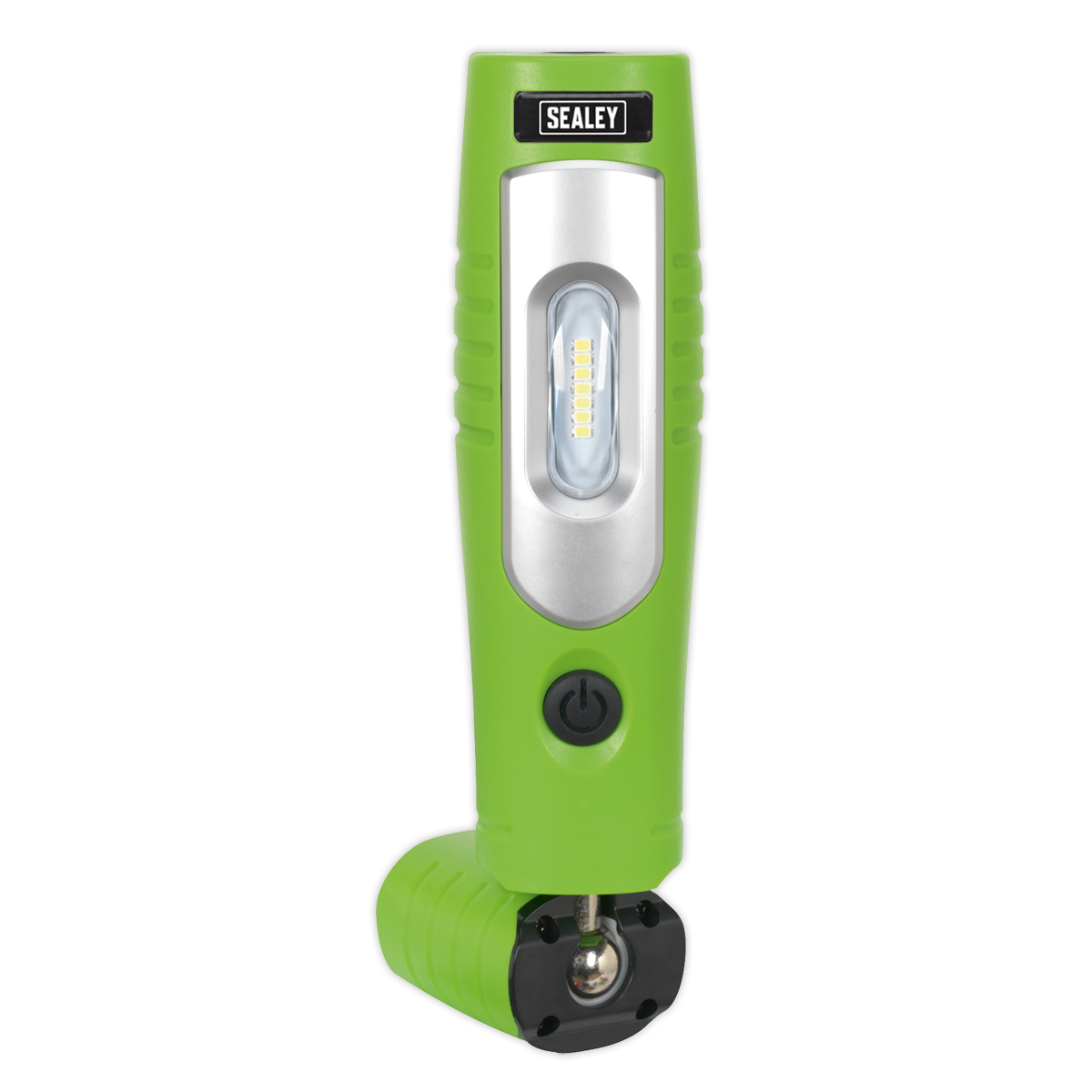 Unique and innovative 360° swivel and tilt function enables the light source to be positioned in any direction. Exclusive patented design owned by and registered to Sealey. 4W SMD LED providing up to 400 lumens output with 120° spread of light, illuminating the whole work area. Includes an additional high power 3W LED directional torch. Features two swivel hooks and three rubber covered magnets, two on the rear and one on the end, which allow hands-free operation. High quality 2.2Ah lithium-ion battery for longer life, no memory effect and a much slower discharge than traditional Ni-MH batteries. Micro USB charging port. Supplied with USB cable.