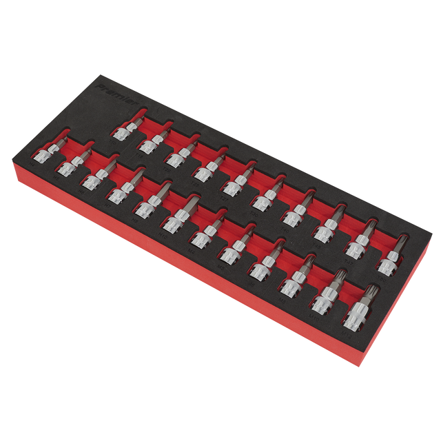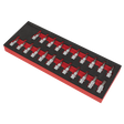Forged Chrome Vanadium steel sockets with S2 steel hex bits. Sockets are heat treated and chrome plated with a fully polished mirror finish. Knurled rings assist the gripping of the sockets with oily fingers. Supplied in EVA storage tray.
