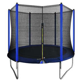 Heavy-duty trampoline ideal for keeping children active whilst having fun at home. PVC and PE covered EPE foam surround to protect children from accidentally landing on the springs. High quality galvanised steel springs tested to last for a minimum of 1 million bounces! Fitted with PE safety enclosure net with zip entrance door to limit risk of injury. Tested and approved to EN71. Size: Total Width: 2440mm, Bounce Mat Size: 2020mm, Safety Net Height: 1540mm, Trampoline Height (floor to bounce mat): 600mm, Total Height: 2140mm.