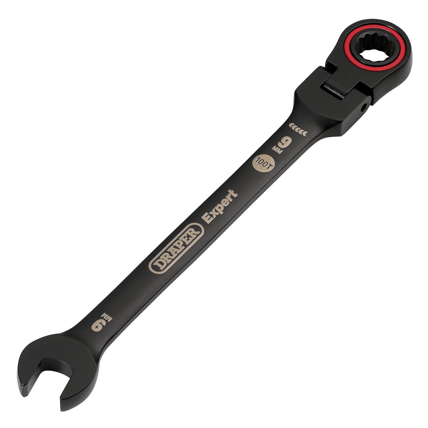 Draper Expert Hi-Torq® Metric Flexible Head Ratchet Combination Spanner, 9mm, Black - 8241FMM/BK