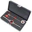 Consists of long handled 72-tooth reversible ratchet, die holder with three retention screws suitable for dies M3 to M12, tap holder, 3mm hex key and T-bar. Supplied in a heavy-duty storage case with foam inlays.