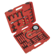 A comprehensive kit for testing the compression on both diesel and petrol vehicles. Features 600psi gauge with large rubber bumper, straight and right angled quick connect fittings and an extensive range of spark/glow plug and injector adaptors. This kit will cover most modern car, van, truck, bus, agricultural and marine engines. Supplied in storage case. See instructions on Sealey website for complete vehicle applications.