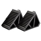 These wheel chocks are constructed from heavy-duty moulded rubber to improve traction between the tyre and surface. Suitable for use with cars, light commercial vehicles, caravans and trailers. Supplied as a pair.
