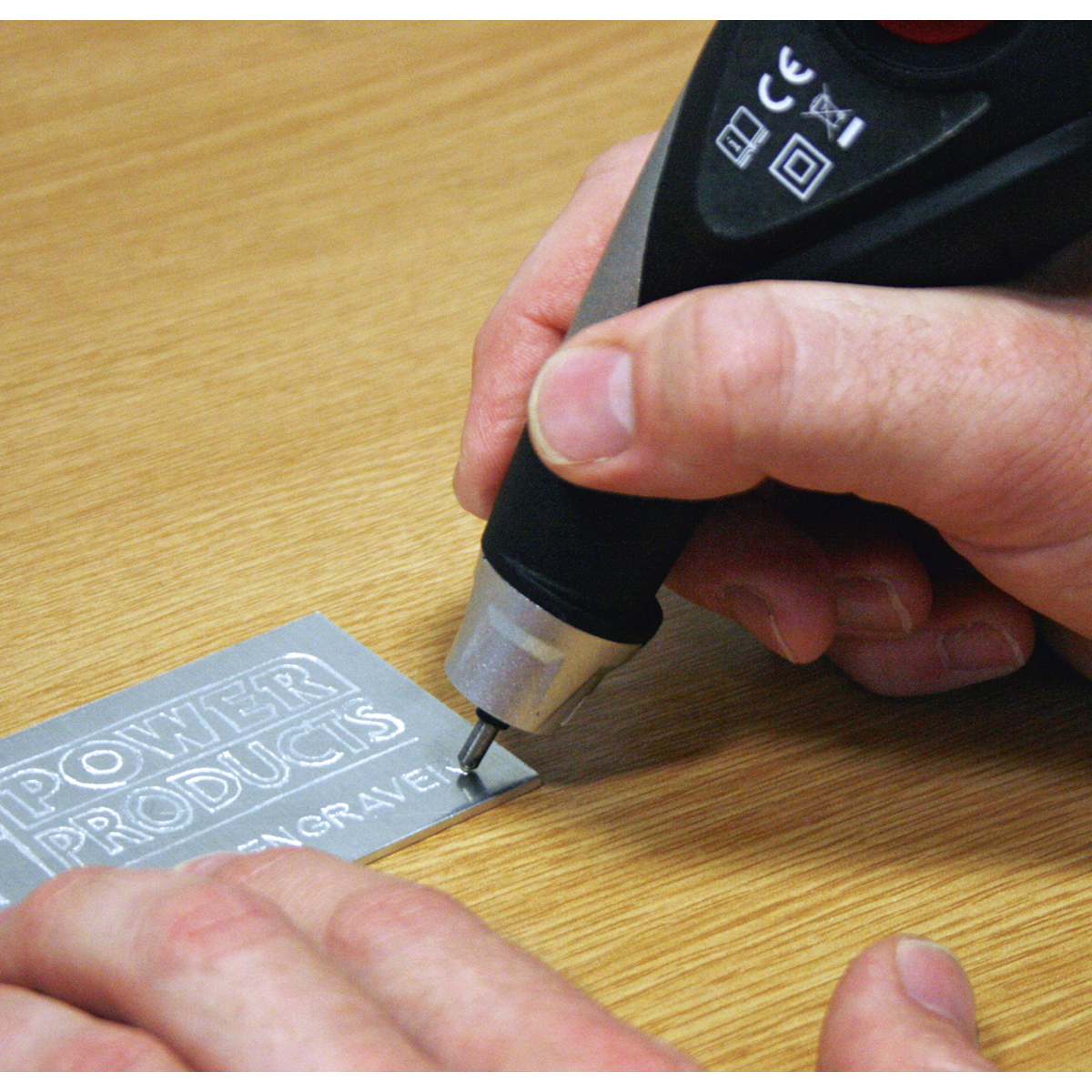 Multipurpose high-speed engraver with on/off switch and variable stroke adjustment, which gives more control on workpiece. Suitable for engraving and etching on wood, metal, plastic and glass. Supplied with tip and two stencils.