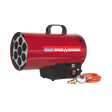 40,500Btu/hr(11.5kW) Propane Space Warmer®. Features safety solenoid valve which prevents the unit from leaking gas and safely ignites by the Piezo push-button ignition system. Supplied with a fully approved gas regulator and hose. The Space Warmer® is fan assisted and as the fuel is completely burned it leaves no oily residue like you may experience when using other types of fuel heaters. There is no odour, except for the few seconds during start-up and the unit runs a little more quietly since they do not need a compressor to drive the fuel to the burner. Heats an area of 6850ft³(194m³) with a fuel consumption of 0.91kg/hr.