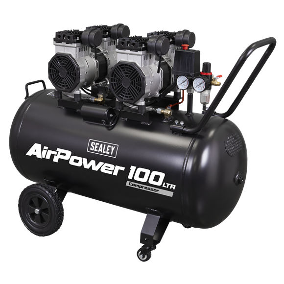 Sealey | 100L Oil Free Low Noise Direct Drive Air Compressor 2 x 2hp - SAC10001S 75.0 kg