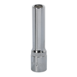 Cold-forged Chrome Vanadium steel socket. Hardened and tempered for added strength. Chrome plated with a fully polished mirror finish. WallDrive® socket configuration. Knurled ring for extra grip with oily fingers.