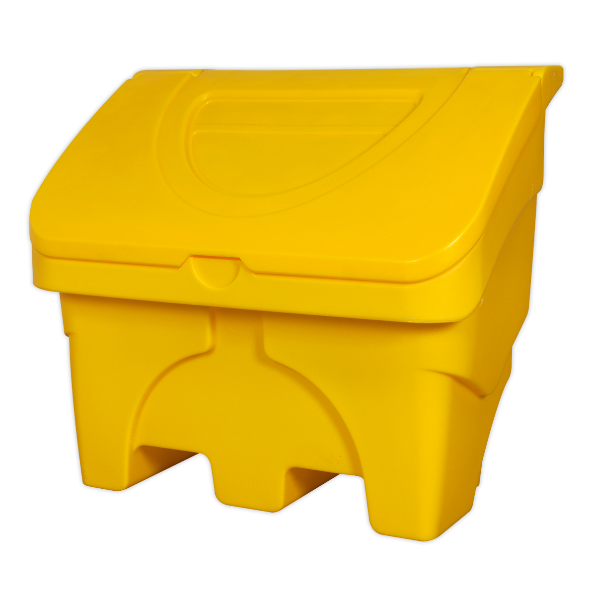 Manufactured from hard-wearing polyethylene. Ideal for indoor and outdoor storage of grit, sand and salt. Angled lid forces water to run off, keeping contents dry. Features large opening for easy-access. Compatible with most pallet trucks.