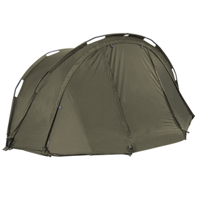 • This two-person bivvy tent is manufactured with a water-repellent, windproof and UV-resistant polyester surface and supplied with a sturdy groundsheet so you can keep fishing no matter the weather.