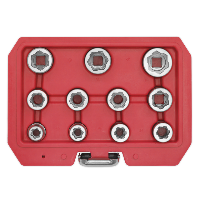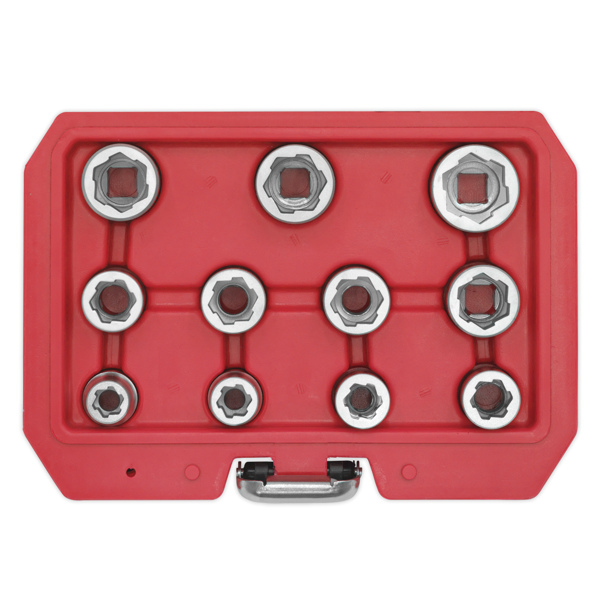 Drop-forged Chrome Molybdenum steel sockets with a satin finish. Innovative design provides maximum gripping power for the removal of damaged fasteners. Supplied in storage case.
