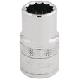 Expert Quality, 12 point socket manufactured from chrome vanadium steel that's hardened and tempered with a polished finish. Each socket has a knurled ring for extra grip.
