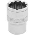 Expert Quality, 12 point socket manufactured from chrome vanadium steel that's hardened and tempered with a polished finish. Each socket has a knurled ring for extra grip.