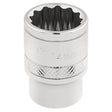 Expert Quality, 12 point socket manufactured from chrome vanadium steel that's hardened and tempered with a polished finish. Each socket has a knurled ring for extra grip.