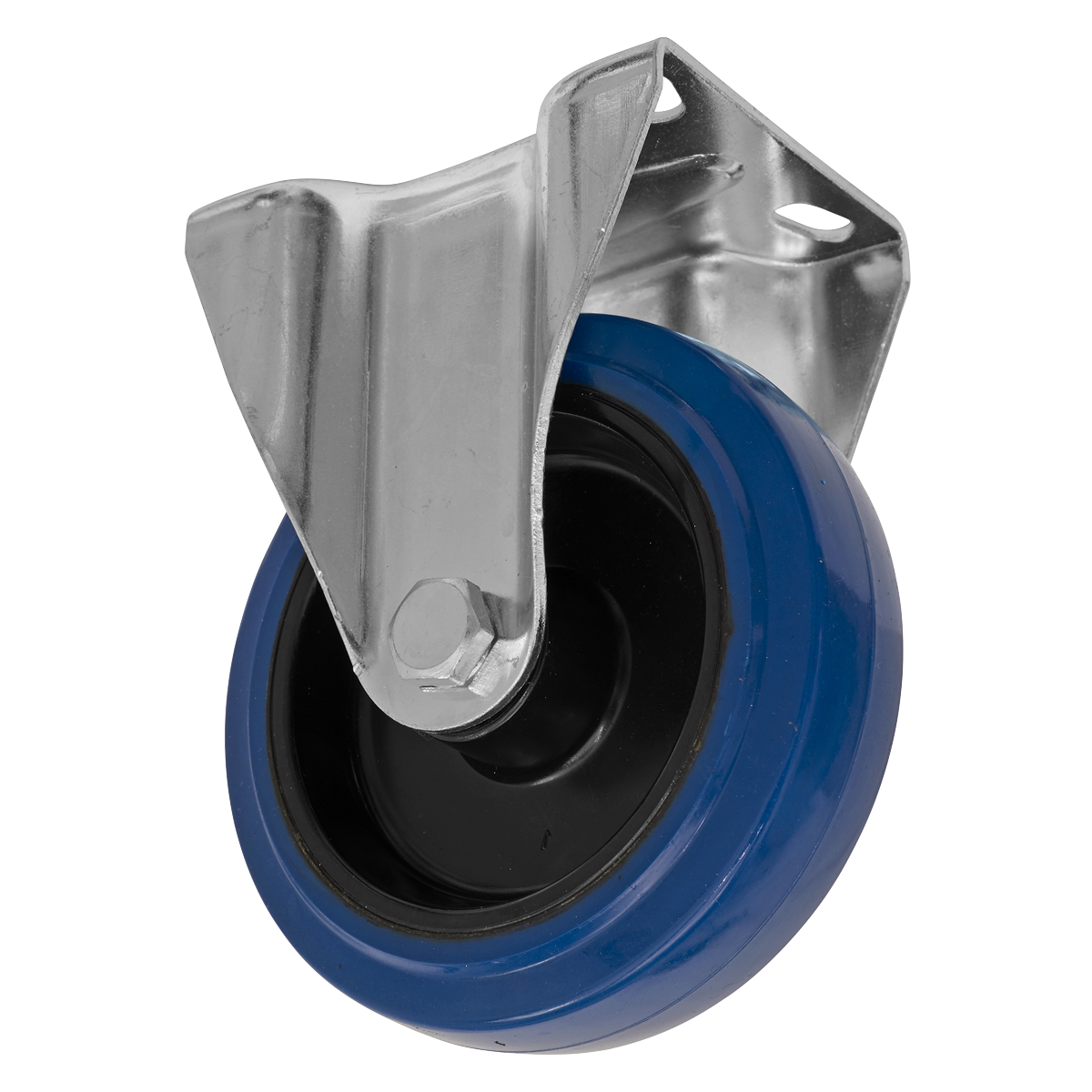 Heavy-Duty Blue Elastic Rubber Fixed Castor Wheel Ø125mm - Trade - SCW3125FPEM 0.815 kg