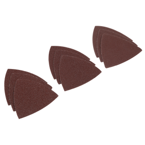 9-Piece sanding set for the Sealey CP108VMTBO and other compatible multi-tools. Hook-and-loop backed for fast and easy changes during use. Featuring multiple grit sizes to finish off most sanding jobs. Includes three sizes of each 60, 80 and 120Grit paper.