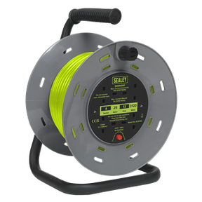 Sealey | 25m Cable Reel with Thermal Trip 4 x 230V - Hi-Vis Green - BCR25G 3.8 kg