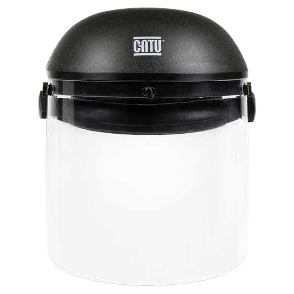 Protects against arc flash caused by short circuits on live electrical systems. Manufactured from clear polycarbonate, with anti-misting and anti-scratch treatment. Ratchet mechanism so the visor can be flipped up when not used. Ratchet adjustable headband with nylon comfort band. Suitable for use while wearing glasses. Shield dimensions: 220 x 396mm. Conforms to EN 166, EN 170, Class 1, GS-ET-29, ANSI Z 87.1.
