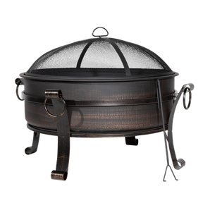 Deluxe 2-in-1 fire pit. Supplied with steel lid allowing this fire pit to be converted into a coffee table. Manufactured from durable steel (1mm) with an antique bronze finish. Includes mesh safety screen to prevent embers and sparks flying. Suitable for use with untreated wood and logs. Supplied with fire poker. Some simple assembly required.