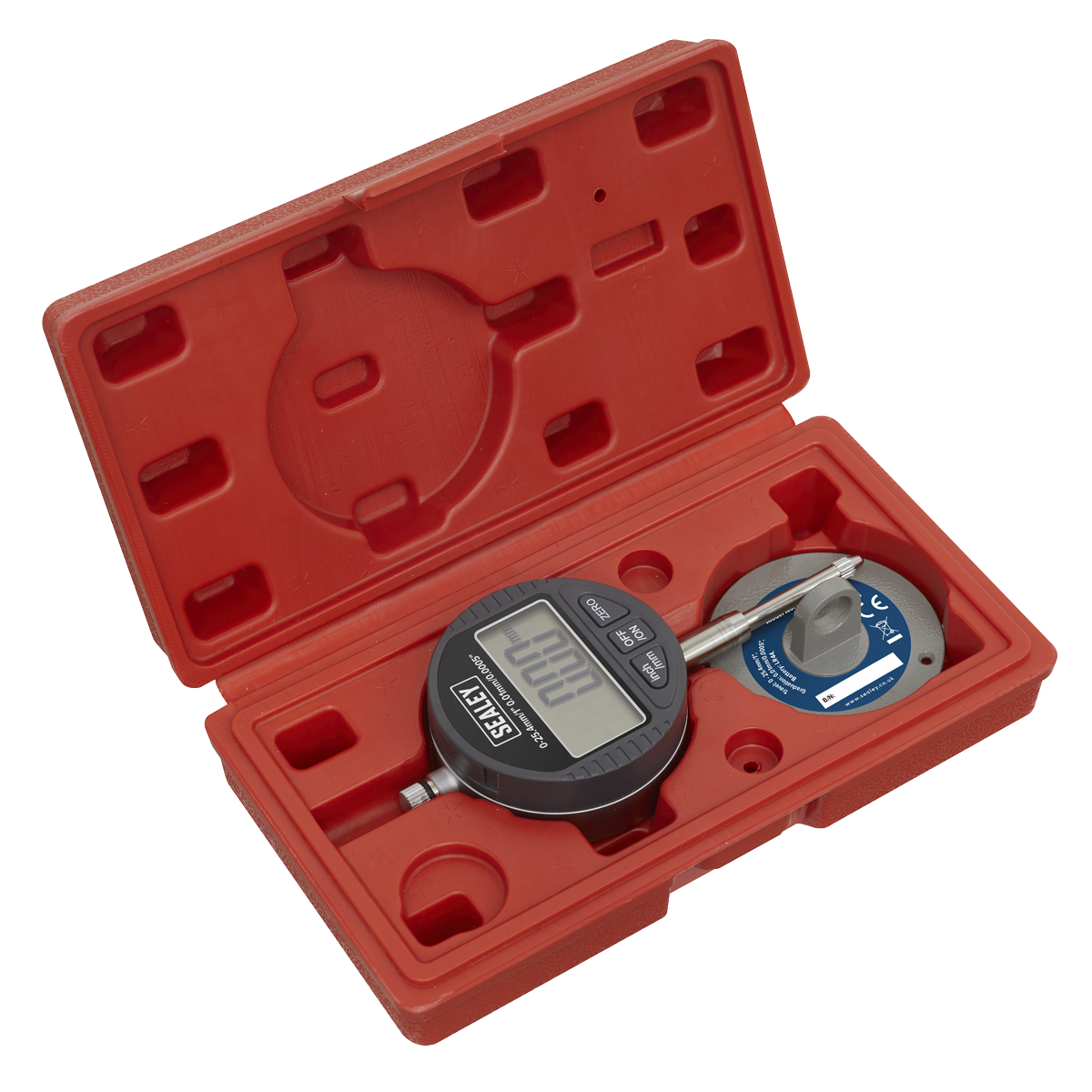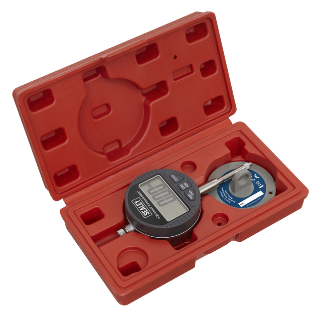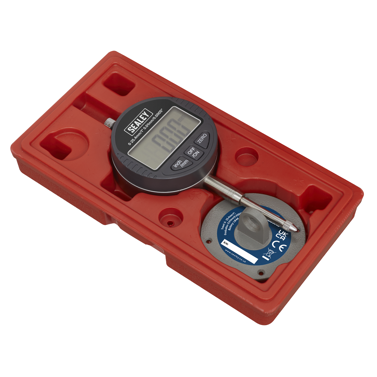 Suitable for use in precision engineering. Digital display shows both Metric and Imperial measurements. Measuring range between 0-25.4mm. Features lugged back plate for mounting on magnetic bases.