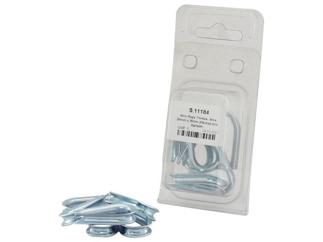 Manufactured by Sparex, a trusted global supplier of agricultural and industrial hardware, the S.11184 wire rope thimbles meet strict quality standards for strength, consistency, and reliability. Packaged in a convenient Agripak set of six, they are ideal for professional and general-purpose cable protection needs.