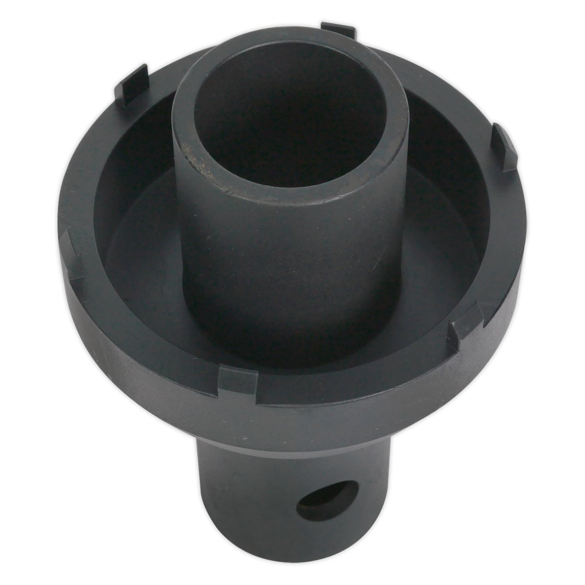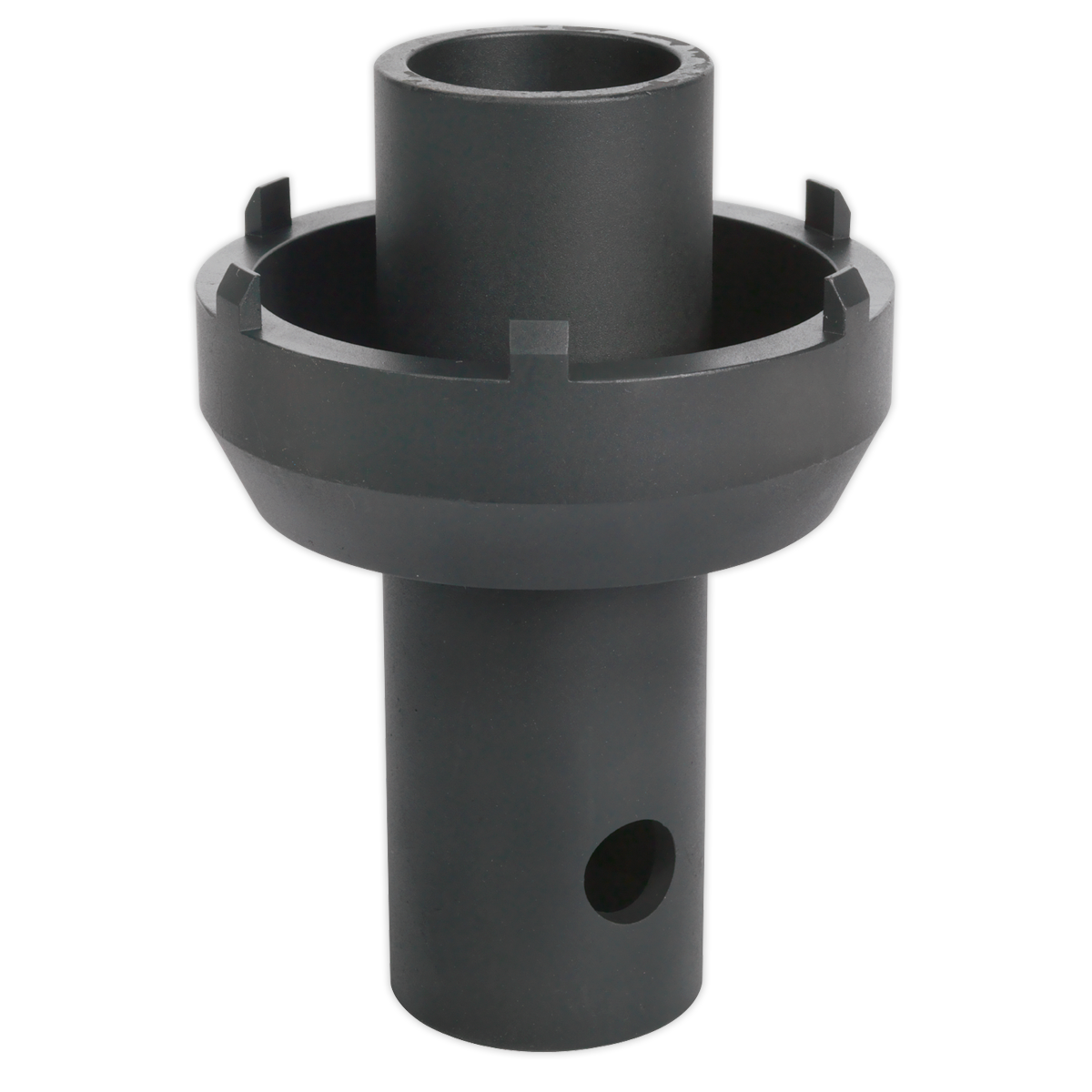 Chrome Molybdenum, drop-forged, 6-stud socket with locating tube. Designed for grooved lock nut fitted to Mercedes Actros rear axle and HL/HL 8 (Hypoid) axles.