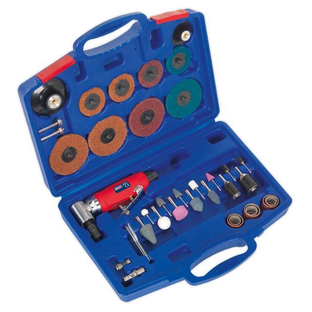 • Supplied in a storage case with a range of die grinding points, sanding rolls and Ø50/75mm preparation pads.