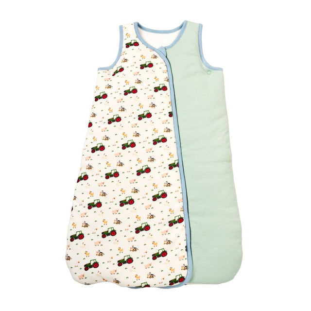 Made from 100% breathable cotton with a soft polyester filling, the sleeping bag provides gentle warmth without restricting movement. A full-length zip allows for quick dressing and easy nighttime changes, while adjustable press studs on the sides create a snug, customizable fit.