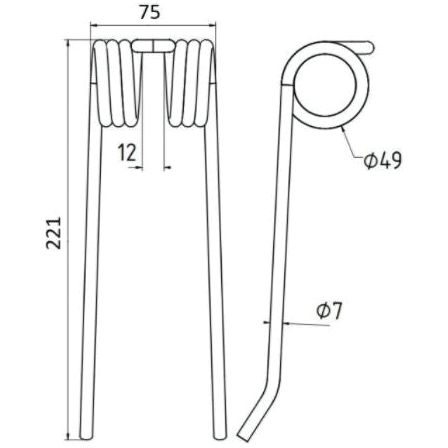 Pick-Up Tine - Length: 221mm, Width: 75mm, Ø7mm