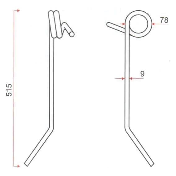 Seeder Tine - Ø9mm, Length: 515mm To fit as: 18903650 | Sparex Part No.S.79642 0.54 kg