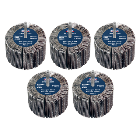 Sealey | 80 x 40mm Abrasive Flap Wheel on 6mm Shaft Assorted Grit - Pack of 5 - FW8040ASS