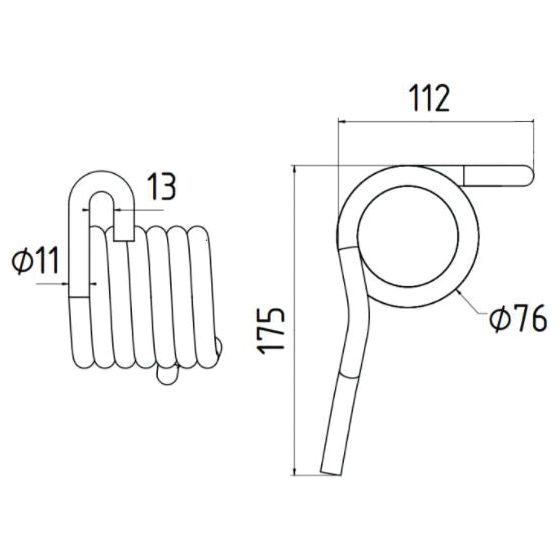 Tedder haytine - LH - Length: 175mm, Width: 14mm, Ø11mm - Replacement for Vicon, Rivierre Casalis To fit as: 90036182 | Sparex Part No.S.77902 is backordered and will ship as soon as it is back in stock.