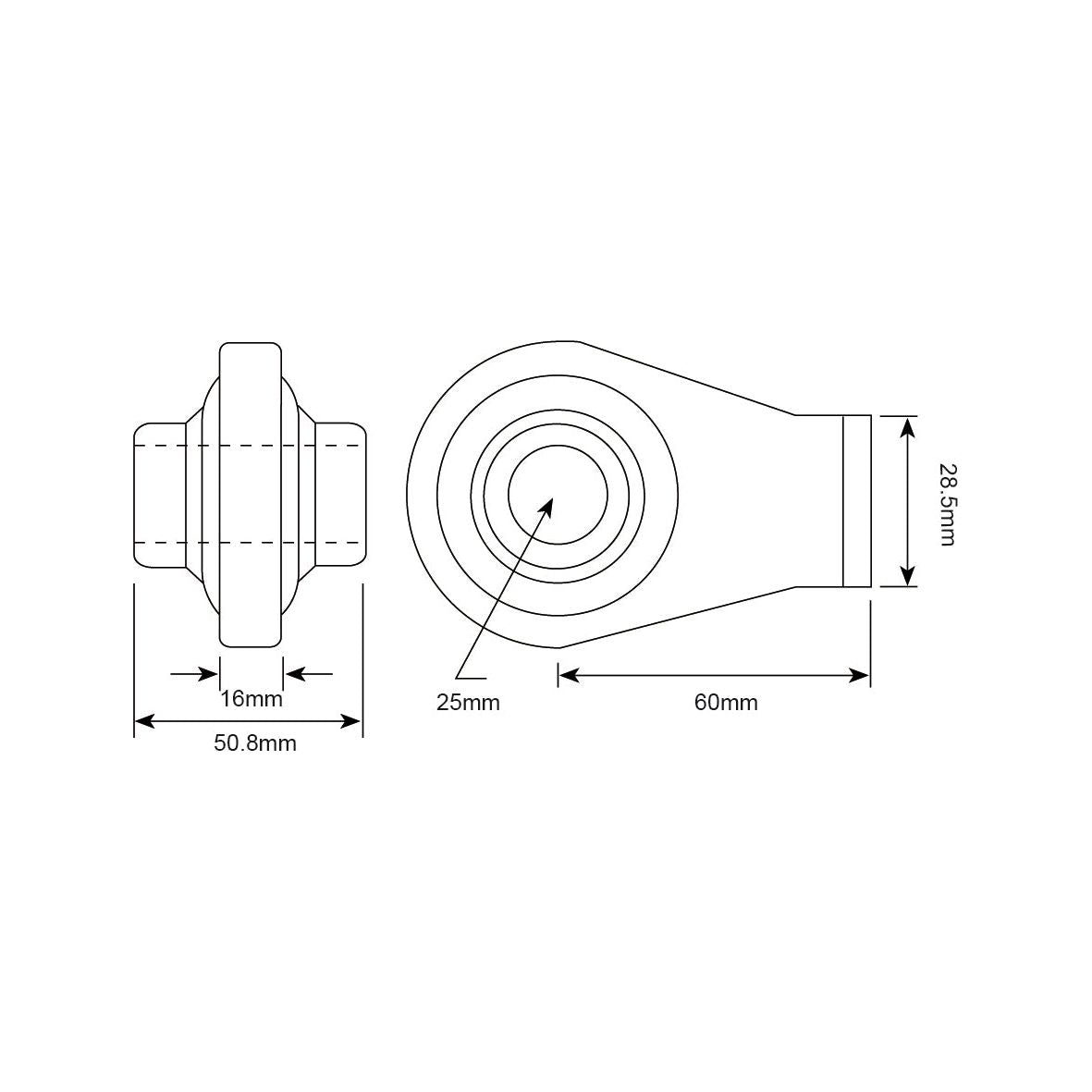 Working length: 60mm, ID: 25.4mm, Welding Length: 29mm, Ball Width:51mm, Width x Depth: 67 x 16mm (2 41/64 x 5/8')