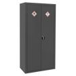 Sturdy metal construction with grey powder coat. Supplied with a pack of appropriate warning labels. Two doors, fitted with 2-point key lock and supplied with two keys. Features three adjustable, lipped shelves and liquid-tight base to retain spills. 155mm Raised, leakproof door sill.
