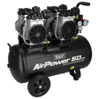 Sealey | 50L Low Noise Oil Free Direct Drive Air Compressor 2 x 2hp - SAC5001S 48.5 kg